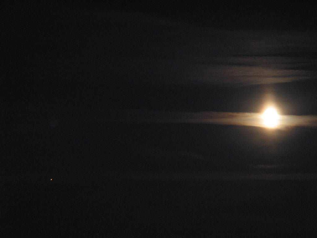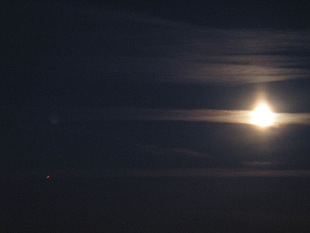 In September 2003 Mars was as close to Earth as it would be for about 60,000 years. Here are 3 photos that I took on the 8th when The Moon was conveniently close to Mars so that I could catch them in the same frame. There is also a faint Moon pillar visible in the images. The 3 pictures are taken with different camera settings, details to follow.