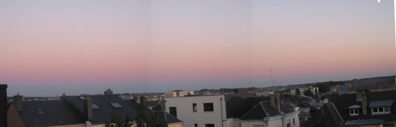 At sunset, everyone always looks to the west but miss what can be an equally beautiful site, what I call Nightrise, if you look in the other direction you can see the Earths shadow (the dark band on the horizon) rising in the east as the sun sets in the west. In the west, where the sun has set, the sky is often a rusty red colour. The sky in the east above the earths shadow is often a distinctly different pink colour. In this wide image, the far right is due south where the shadow can be first detected, the far left is due east where it is 'thickest'.