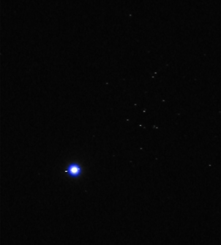 You can see Europa to the right of Jupiter, Io is barely visible merged with the left side of Jupiter, Ganymede and Callisto are merged. The Beehive Cluster is above and right of Jupiter.